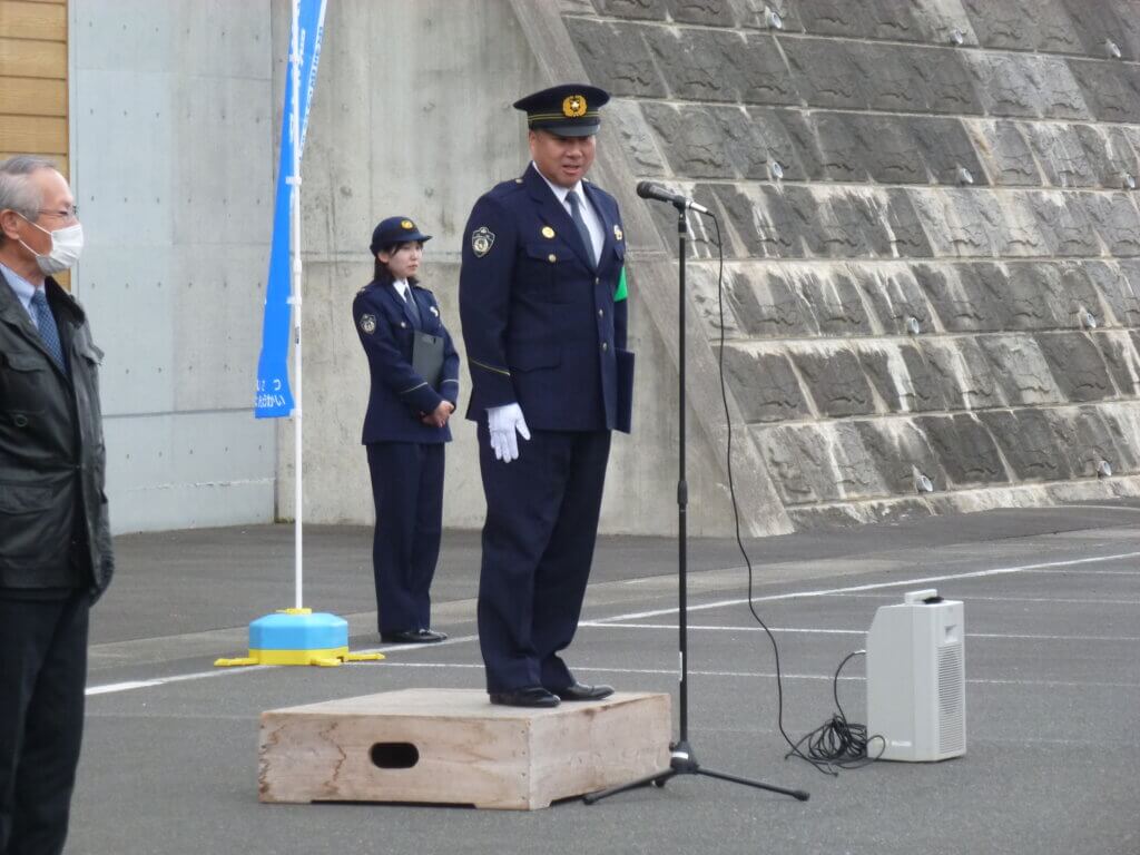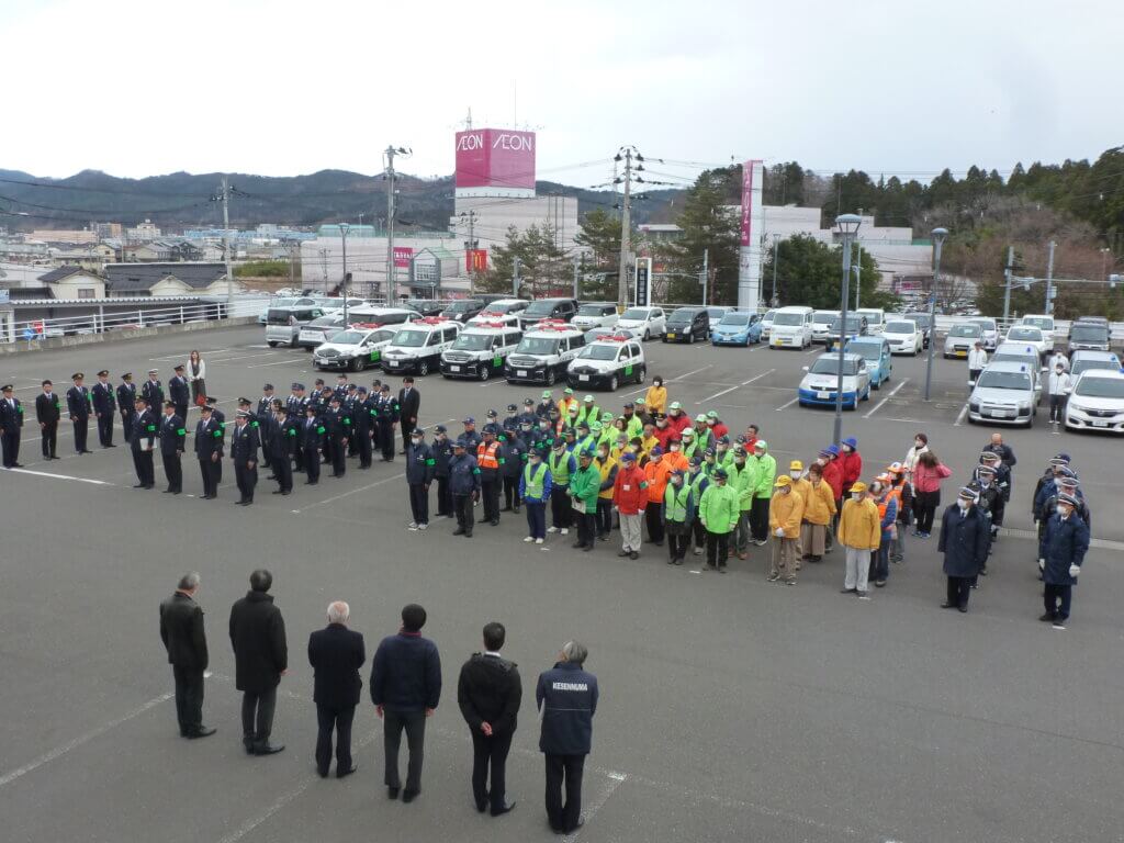 出動式終了後、署員らが乗った約20台の警察車両などが啓発活動のため市内のパトロールに出動しました。